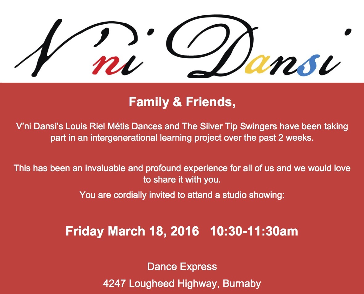 Compaigni V'ni Dansi Society Métis Traditional & Contemporary Dance PO Box 95071 Kingsgate Vancouver, BC V5T 4T8 CRA # 830761276RR0001